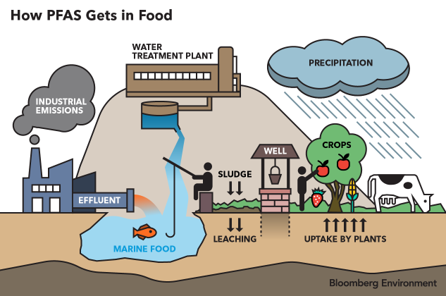 PFOS and PFOA are the two types of PFAS that fall under the EPA’s 70 parts per trillion advisory for exposure. The U.S. doesn’t have recommended or enforceable limits for PFAS in food.